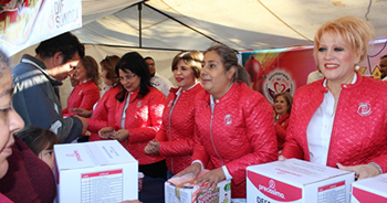 La Gobernadora del Estado, Lic. Claudia Pavlovich Arellano, acompañada de la Sra. Margarita Ibarra de Torres, Presidente de DIF Sonora y Karina Zárate Félix, Directora General de dicho organismo, recorrieron cada uno de los stands del Bazar Navideño.