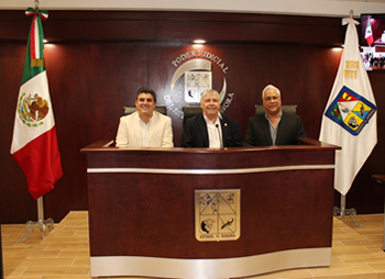 También integraron el presidium los magistrados Griselda O. Pándura Truqui, Irma Meza Vega, Miguel Ricardo Quintana Tinoco y Juan Sebastián Sotomayor Tovar, así como el Lic. Arsenio Duarte Murrieta, Visitador General y Contralor del STJ; el Lic. Miguel Ángel Bustamante Maldonado, Coordinador General del Instituto de la Judicatura Sonorense; la Lic. Josefina Sánchez Reyes, Oficial Mayor del STJ; y el Lic. Luis Fabián Ramírez Mendoza, Coordinador General de Gestión Judicial del STJ.