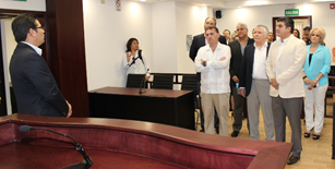 "Por ello, en el marco de la consolidación del Nuevo Sistema se hizo prioritario habilitar las salas 3 y 4 de este Juzgado Oral y dotarlas de los recursos materiales y humanos que garanticen su funcionalidad para la mejora del servicio", puntualizó Ramírez Mendoza, para después realizar un recorrido por las instalaciones de las salas, donde explicó detalladamente su funcionamiento y el equipamiento con que cuentan.