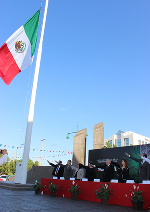 La ceremonia cívica fue amenizada por la Banda de Música del Gobierno del Estado, dirigida por el Maestro Miguel de la Rosa, quienes acompañaron al tenor Ignacio Quijada Varela al entonar el Himno Nacional Mexicano; los honores al Lábaro Patrio estuvieron a cargo de elementos de la Banda de Guerra y Escolta del 24 Batallón de Infantería de la Cuarta Zona Militar; y el juramento a la Bandera fue recitado por Eduardo Ibarra Lafontaine, alumno del III semestre del CBTIS 132.