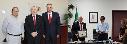 Acompañado de la Lic. Josefina Sánchez Reyes, Oficial Mayor del STJ, el magistrado presidente recibió de manos del Ing. Jesús Ramón Moya Grijalva, Auditor Mayor del ISAF, el documento que avala el resultado del informe que se presenta en el Congreso del Estado de la cuenta pública del año pasado, así como un reconocimiento enmarcado conmemorativo del destacado logro consistente en cero observaciones.