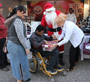 En el stand del Voluntariado del STJ se ofertaron despensas y cobijas, además de que se contó con la presencia del personaje navideño Santa Claus, quien se tomó fotos con la gente que se acercaba.