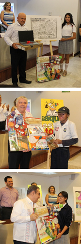 Los ganadores de los tres primeros lugares en Hermosillo son: Aneth Carolina Delgado Silvestre, primer lugar, ganadora de una lap top y un set de dibujo para pinturas; Pedro Daniel Caro Aragón, segundo lugar, ganador de un set de dibujo para pinturas y libros; y Jessica Michelle Icedo Madrid, tercer lugar, ganadora de un set de dibujo para pinturas.