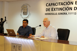 Este fin de semana Jueces de Primera Instancia y personal jurisdiccional del Poder Judicial de Sonora, así como personal de la Fiscalía General de Justicia del Estado se capacitaron en materia de Extinción de Dominio, teniendo como expositores al Mtro. José Alfredo Reyes Espinoza y al Dr. Camilo Constantino Rivera.