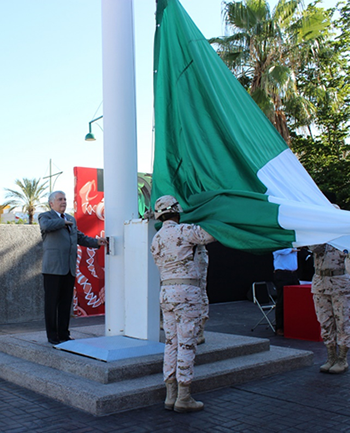 Con motivo del CCVIII Aniversario de la Independencia de México, se llevó a cabo la ceremonia de izamiento de nuestro Lábaro Patrio que este día correspondió al Poder Judicial del Estado de Sonora en coordinación con la Comandancia de la Cuarta Zona Militar, el Centro de Bachillerato Tecnológico Industrial y de Servicios No. 132 y la Secundaria General No. 4 "Prof. Rubén Gutiérrez Carranza".