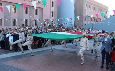 La ceremonia cívica fue amenizada por la Banda de Música del Gobierno del Estado, dirigida por el Maestro Miguel de la Rosa, quienes acompañaron al tenor Ignacio Quijada Varela al entonar el Himno Nacional Mexicano. Los honores al Lábaro Patrio estuvieron a cargo de elementos de la Banda de Guerra y Escolta del 24 Batallón de Infantería de la Cuarta Zona Militar; y el juramento a la Bandera fue recitado por Naomi Gabriela Santeliz Palomares, alumna del quinto semestre del CBTIS 132.