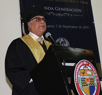 El Dr. Pesqueira Leal explicó que en la Unison, desde que se aprobó la reforma constitucional en 2008, siempre estuvieron muy al pendiente de ir impartiendo cursos para aproximarse paso a paso a lo que sería el año 2016 con la entrada en vigor del Sistema de Justicia Penal, "sin embargo nosotros tomamos la decisión de identificar en el Estado a quienes tenían el mejor perfil para integrarse al programa de Maestría en Procedimiento Penal Acusatorio Adversarial y Oral, esta es la segunda generación y para nosotros es motivo de un enorme orgullo, son personas honradas, bien formadas, personas que además de con el pensamiento, rigen sus actividades con el corazón".
