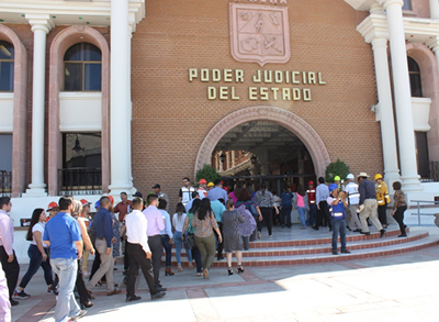 El día de ayer a las 14 horas se practicó un simulacro cuya hipótesis fue un sismo, por lo que de acuerdo al protocolo se activó el sistema de alertamiento y se procedió a la evacuación total del edificio sede del Poder Judicial del Estado (PJE), todo esto con un doble propósito: el primero, recordar los terremotos que sucedieron en la Ciudad de México y en otros puntos del país el 19 de septiembre de 1985 y en idéntica fecha pero de 2017, y además para cumplir con lo que contempla el artículo 67, fracción II de la Ley de Protección Civil para el Estado de Sonora, que consiste en realizar cuando menos dos simulacros al año.