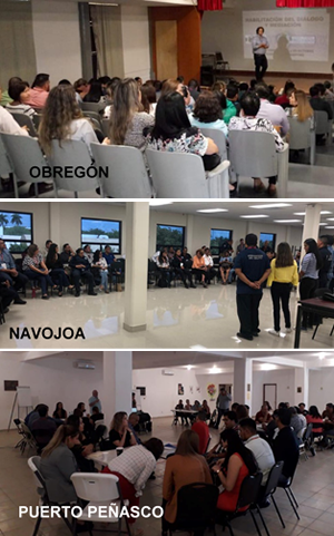 "Mediación Familiar y Convivencia Pacífica", por Rosario Ramos Oquita en San Luis Río Colorado; "Mediación Comunitaria Entre Pares y Prevención del Delito", por Juan Carlos Vezzulla en Nogales; "Habilitación del Diálogo y Mediación entre Pares (Niñas, Niños y Adolescentes)", por Pedro Morais Martins en Ciudad Obregón; "Mediación Familiar y Convivencia Pacífica", por Silvia Sallard López en Puerto Peñasco; y "Policía Mediadora en Conflictos en Familia, Escuela y Comunidad", por Fadhila Mammar en Navojoa.