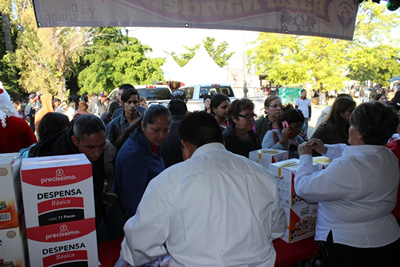 En el stand del Voluntariado del STJ se ofertaron despensas y cobijas a bajo costo; también se contó con la presencia del personaje navideño Santa Claus y unas duendesitas, quienes se tomaron fotos con la gente que se acercaba.