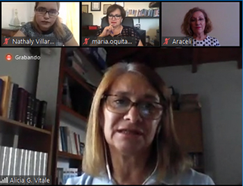 El día de hoy se llevó a cabo de manera virtual la conferencia internacional "Mediación en Línea: Mayor acceso a la justicia", la cual impartió la tallerista Alicia González Vitale, Directora Provincial del Servicio de Mediación Familiar del Poder Judicial de la Provincia del Neuquén, Argentina.