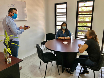 - Servicio Presencial , en el que ambas partes en conflicto están físicamente con la persona encargada de mediar entre ellas. Por la actual contingencia sanitaria, dicho servicio solamente se presta en los asuntos urgentes del índice de los Juzgados Orales Penales del Estado con estricto apego a los protocolos de sana distancia, desinfección y protección de los intervinientes con cubrebocas, gel antibacterial y desinfectante en aerosol.
