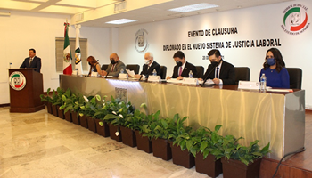 La tarde de ayer, luego de cuatro meses de intensiva capacitación, se llevó a cabo la ceremonia de clausura del Diplomado en el Nuevo Sistema de Justicia Laboral que el Poder Judicial del Estado de Sonora (PJE) organizó para su personal jurisdiccional con la colaboración del Instituto de Posgrado en Derecho del Estado de México (IPD).