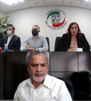 La C.P. María Laura Ladrón de Guevara Estévez, Oficial Mayor del Supremo Tribunal de Justicia (STJ), y el Lic. Luis Carlos Monge Escárcega, Coordinador General del Instituto de la Judicatura Sonorense, dieron la bienvenida a los asistentes y agradecieron a las expositoras por su participación.