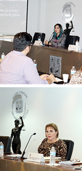 Durante el taller, las licenciadas Sanae Mercedes Hinojosa Taomori, Titular de la Unidad de Igualdad de Género del STJ, y Sandra Alicia Berkowitz Flores, quien por muchos años se desempeñó como Visitadora Judicial de la Visitaduría Judicial y Contraloría del STJ, participaron como ponentes en dos de las sesiones.