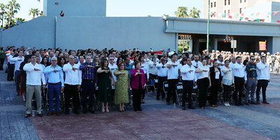 Con motivo del CCXIII Aniversario de la Independencia de México, se llevó a cabo la ceremonia de izamiento de nuestro Lábaro Patrio que este día correspondió al Poder Judicial del Estado de Sonora en coordinación con la Secretaría de Economía del Gobierno del Estado y la Secundaria General No. 5 "José Vasconcelos".