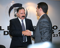 Mgdos. Max Gutiérrez Cohen, Rolando Zayas Antillón, Ignacio Islas Contreras y Sandra Luz Verdugo, General Marco Antonio Covarrubias Aguilar, comandante de la IV Zona Militar, el Gobernador Guillermo Padrés Elías, el presidente del Congreso del Estado, Dip. Faustino Félix Chávez, Mgda. Irma Meza y Mgdos. Francisco Gutiérrez Rodríguez y Miguel Quintana Tinoco. |