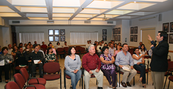El licenciado Miguel Antonio Méndez Palomo imparte el taller “Prácticas e Incidencias en Materia de Oralidad, experiencias del modelo salvadoreño” a los asistentes a los cursos sobre el Proceso Penal Acusatorio y Oral.