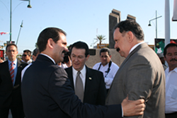 El Gobernador Guillermo Padrés Elías, Jorge Luis Ibarra Mendívil, director general de los Cobach y el Mgdo. Max Gutiérrez Cohen, presidente del STJ. |
