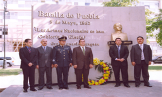 Después de la toma de bandera a los jóvenes de la clase 1988, las autoridades civiles militares y judiciales, se trasladaron al busto del general Ignacio Zaragoza, ubicado sobre el bulevar Hidalgo, en donde montaron una guardia de honor y colocaron una ofrenda floral, en conmemoración del CXLV Aniversario de la Batalla de Puebla. Aquí, en representación del STJ estuvo el magistrado del Segundo Tribunal Colegiado Regional del Primer Circuito, Lic. Javier Enríquez Enríquez.