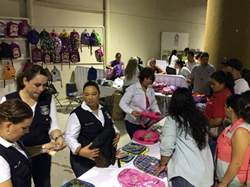 En el stand del Voluntariado del STJ las señoras Ana dolores Villalba de Enríquez, Aracely Campoy de Abril, María Elsa Quiroz de García y Enith Gutiérrez de Castillón ofertaron mochilas.