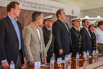 El Lic. Juan Sebastián Sotomayor Tovar, Magistrado Presidente del Poder Judicial del Estado, asistió a la ceremonia de entrega-recepción de mando de armas de la Cuarta Región Naval donde el Almirante José Rafael Ojeda Durán tomó protesta, relevando en el cargo a Rubén Medina Muro.